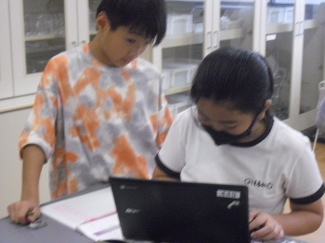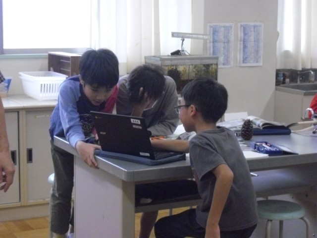 流れる水の量の増加に伴う変化について、何度も映像を見返しながらグループで熱心に話し合っていました。