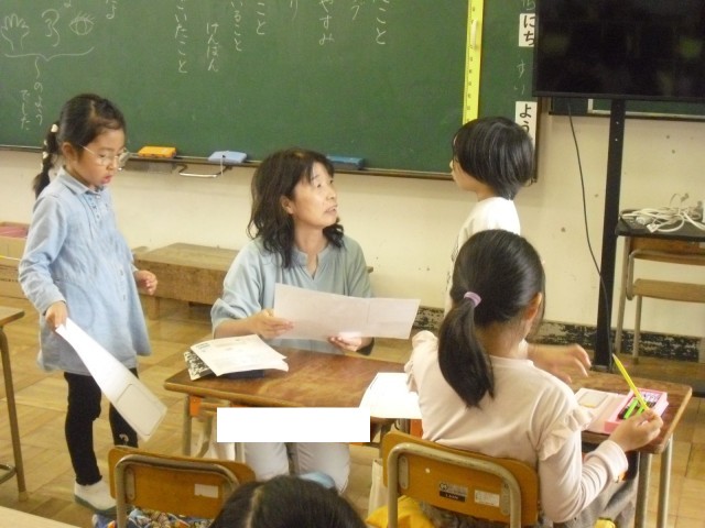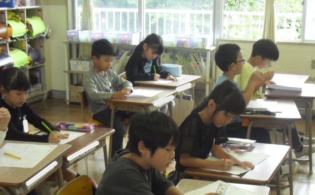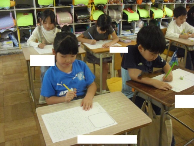 1年生は国語「作文」の学習をしていました。これまでのできごとを振り返り、「たのしかったこと、うれしかったこと、心がうごいたこと」をテーマに作文を書きました。自分の思いをたくさんの文章に表し、「先生、見てください」と書いた文章を見せてくれました。一生懸命に書くことができました。
