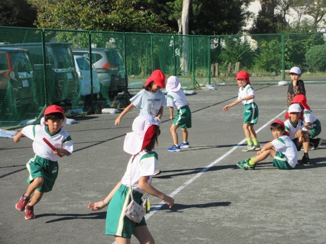 2組は、体育「リレー」の学習です。バトンはうまく渡せたかな?狭いグラウンドなのでコースもとれないね。それでもみんな、元気いっぱい体を動かしています。
