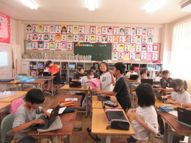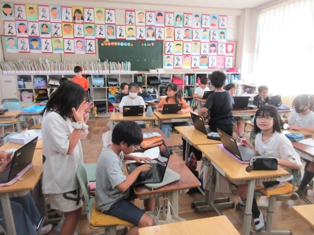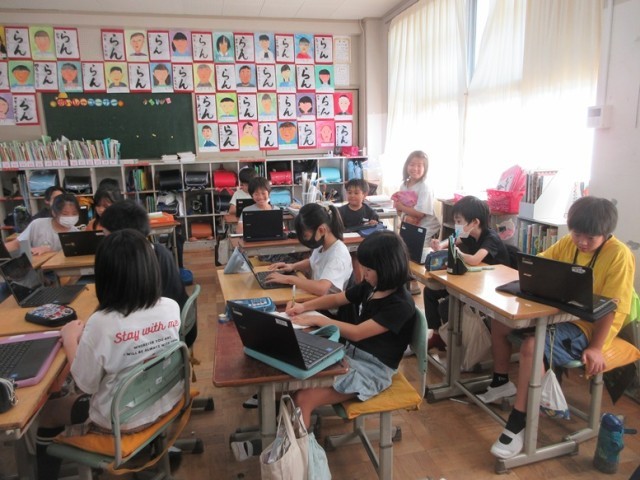 4年1組は、予定を書いた後、Chromebookのタイピングの練習です。4年生ともなるとなかなかの速さでタイピングしています。