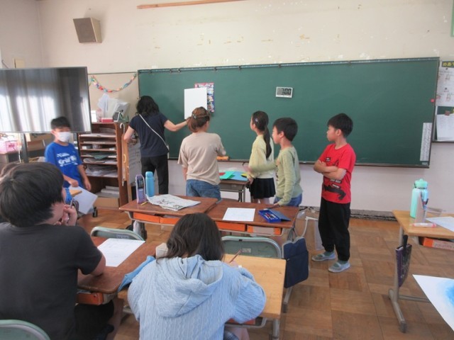 2組は、図工「楽器を吹くぼく・わたし」の仕上げです。仕上がった子たちは、次の「コロコロがーレ」の構想図に取りかかりました。どんなコースが浮かんできたかな?