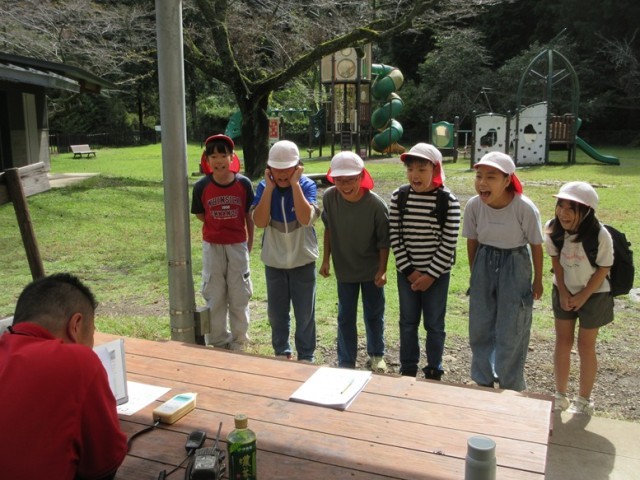 ゴール前のミッションは「大声大会」です。騒音計で測るので、客観的な評価です。何と言うかは班で決めています。「キャンプファイヤー!」とかいろいろあったようです。
