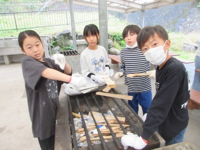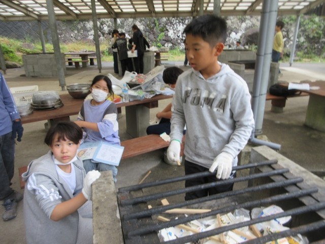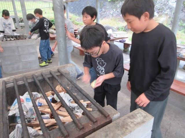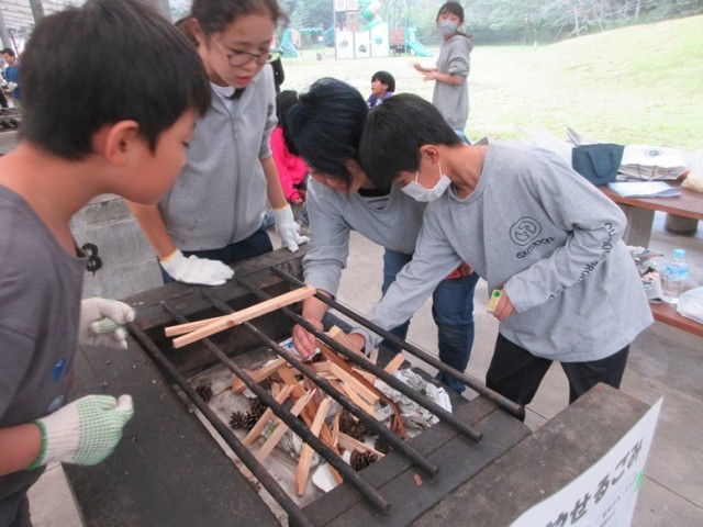 炊事場につくとそれぞれの分担で、鍋にクレンザーを塗ったり、火起こしの準備をしたり、カレー作りの準備が始まりました。