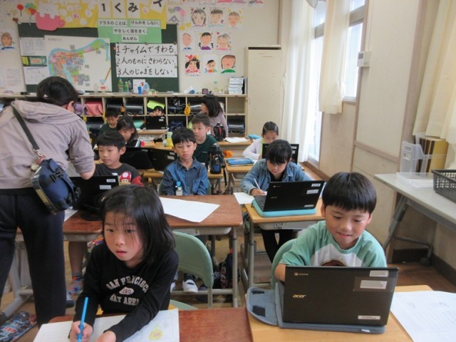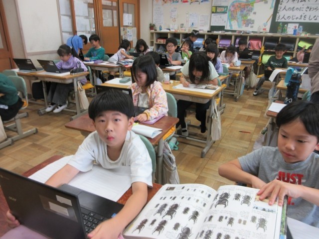 2年1組は、読解「生きものブックを作ろう」の学習です。図鑑やChromebookを使って調べ、プリントにまとめています。いろんな動物や植物について、調べています。けれど、「シマエナガ」は人気ですね~。