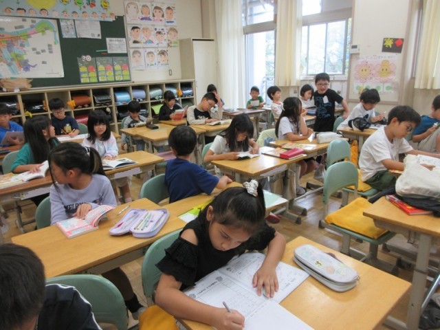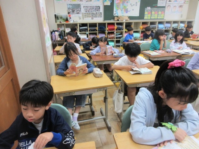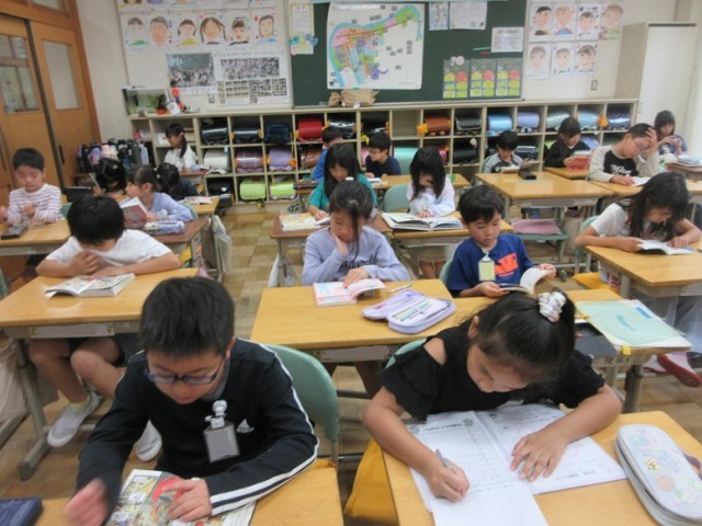 2組は、漢字ドリルをやり、先生に提出した後の読書です。みんな、読書にも集中していました。読書の秋です。