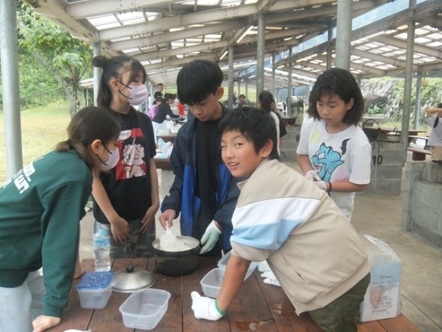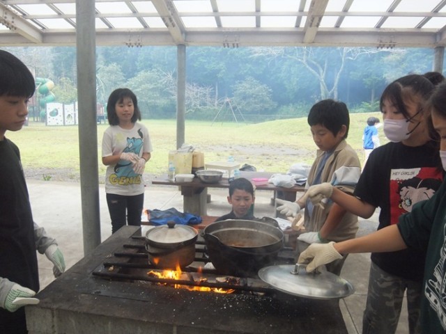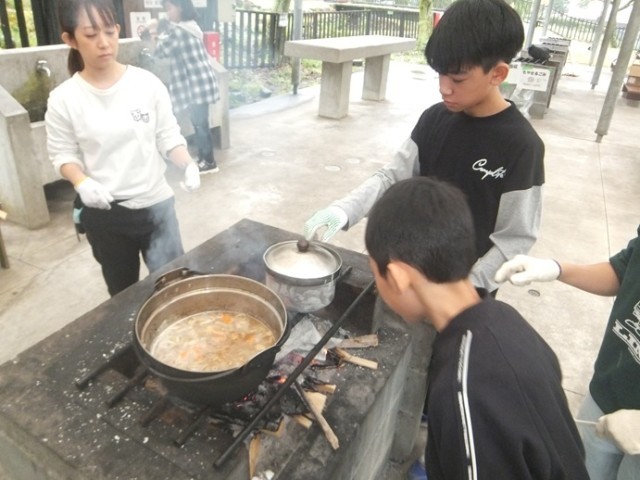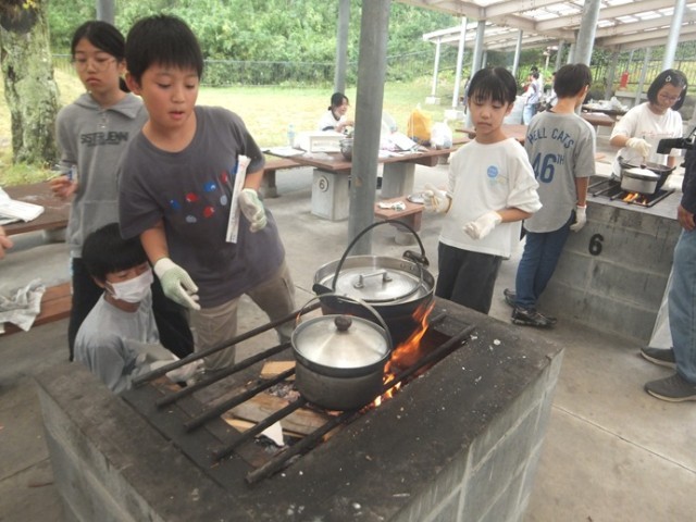 2日目のカレー作りの様子です。どの班も火は上手につきました!