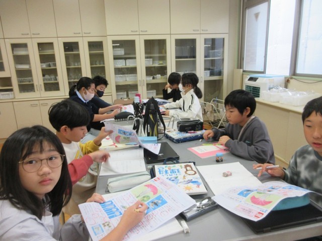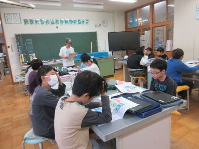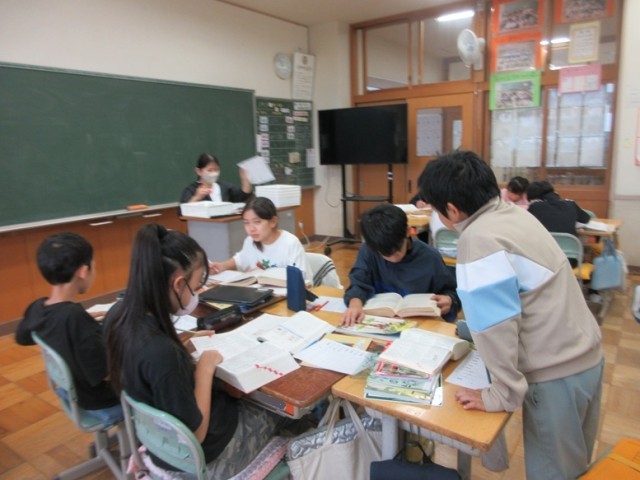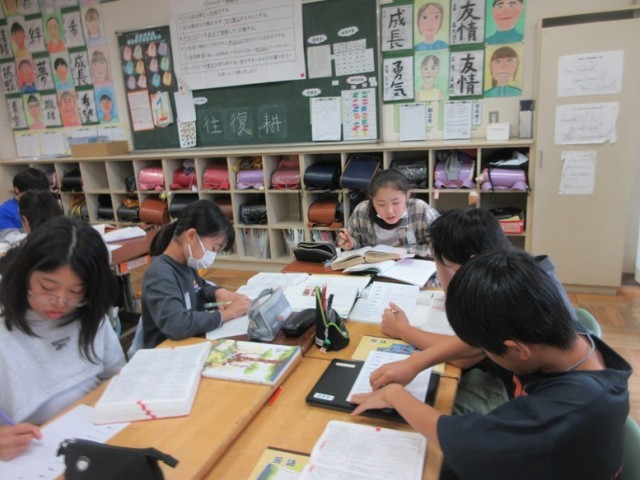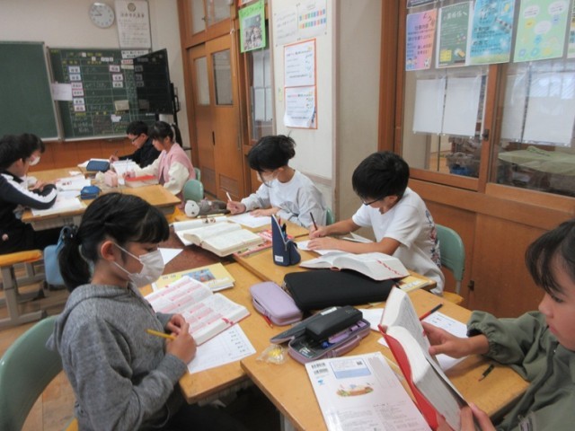 2組は、国語の意味調べです。「風情って、ふうじょうって読むの?」など、グループで協力しながら国語辞典を使って意味を調べていました。