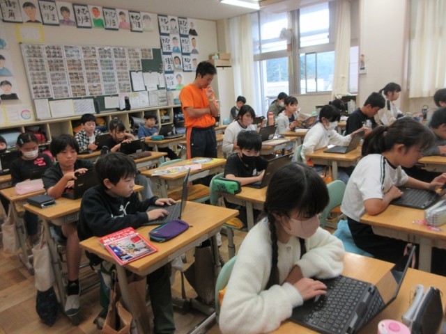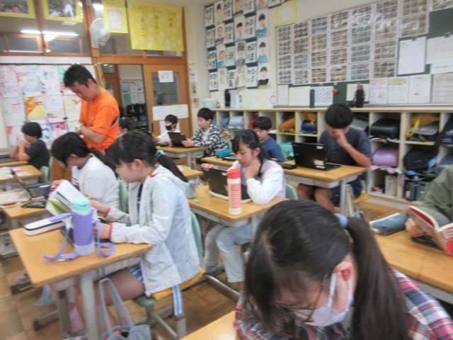 2組は、算数でAIドリルとテストに取り組んでいます。とても集中して取り組んでいます。