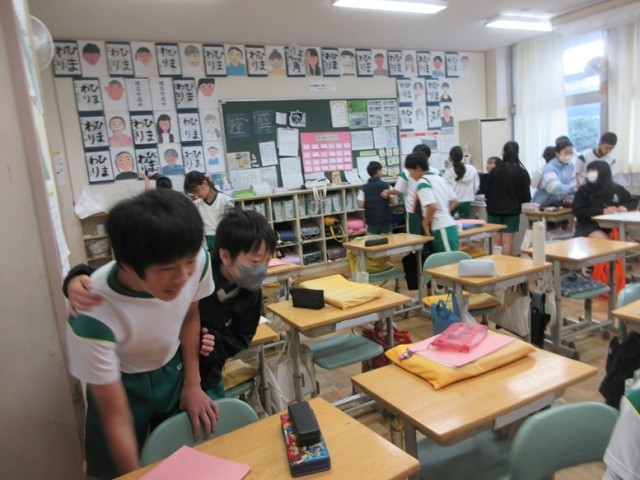 3組は、ちょうど算数が終わり、次の体育を心待ちにしているところでした。体育は、バスケットボール。今日は寒いので、体をいっぱい動かして温かくなってきてくださいね!