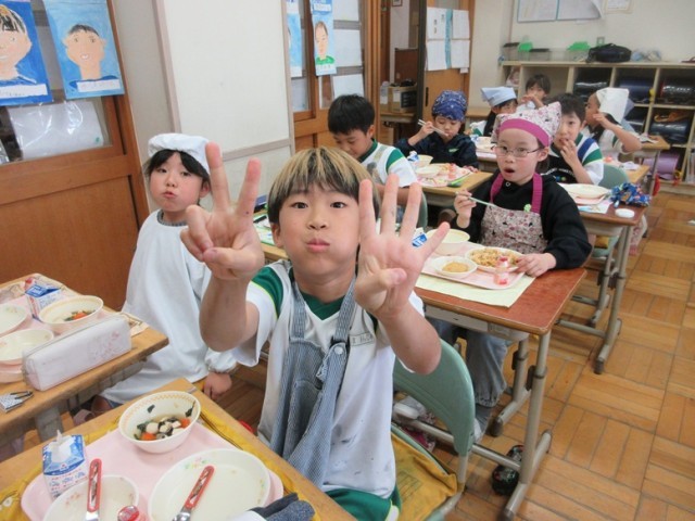 3の2も元気いっぱいです。乳酸飲料はすごく人気でした。特別感がうれしいよね!コロッケもサクッサクに揚げられていておいしかったですね。これからも好き嫌いなくたくさん食べましょうね。