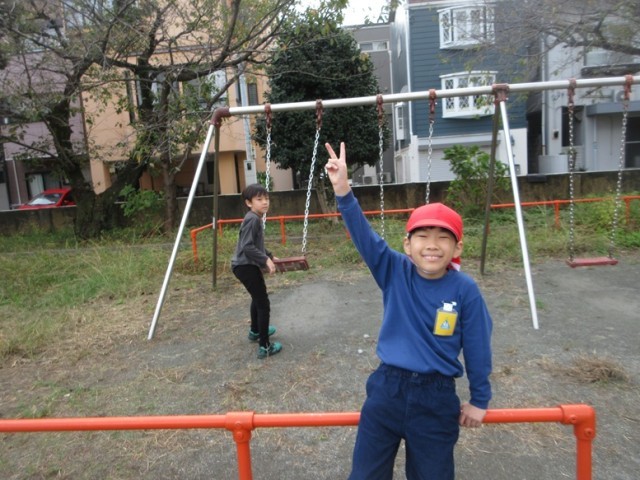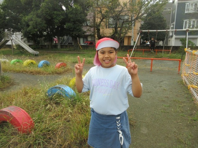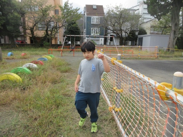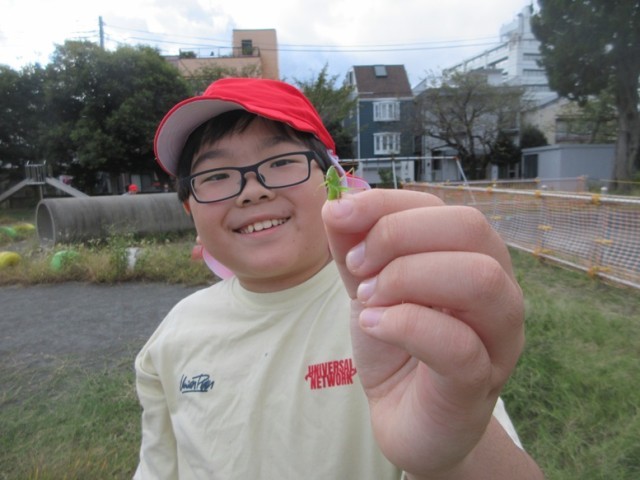 2組は、外で体を動かした後、秋の虫探しです。どうやら1匹つかまえたようです。とってもうれしそうな表情です!気持ちよく朝のスタートが切れています。