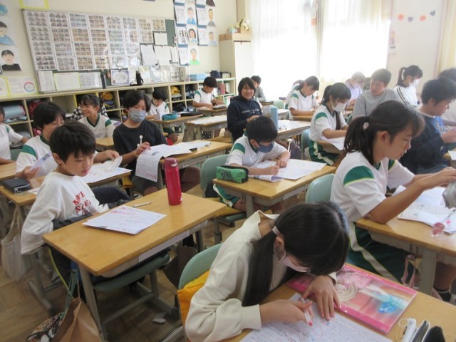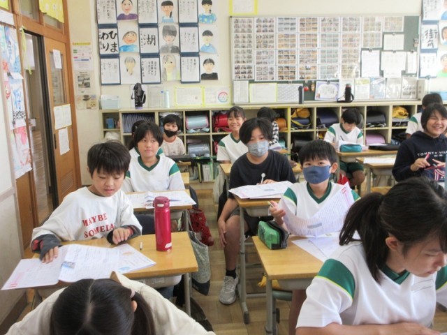6年1組は、いよいよ間近に迫った修学旅行のバスレクの話し合いでした。行きも帰りも楽しく車内で過ごせるといいですね。