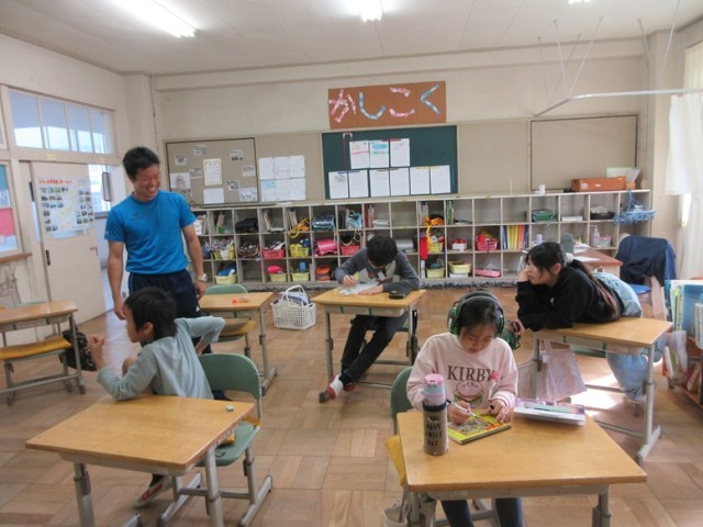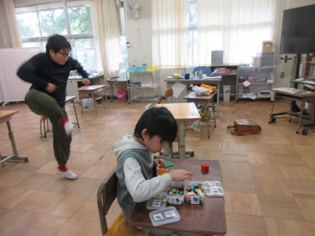 7の1組は、朝の会をして予定を書き終わったところです。この後、外に出て朝の運動を行いました。