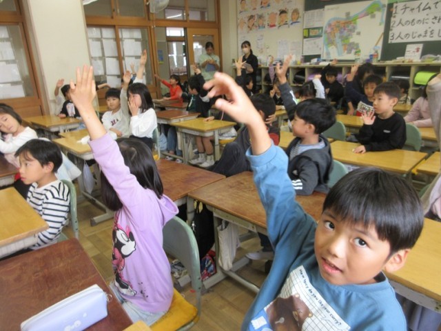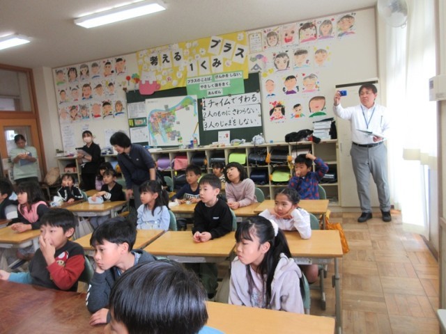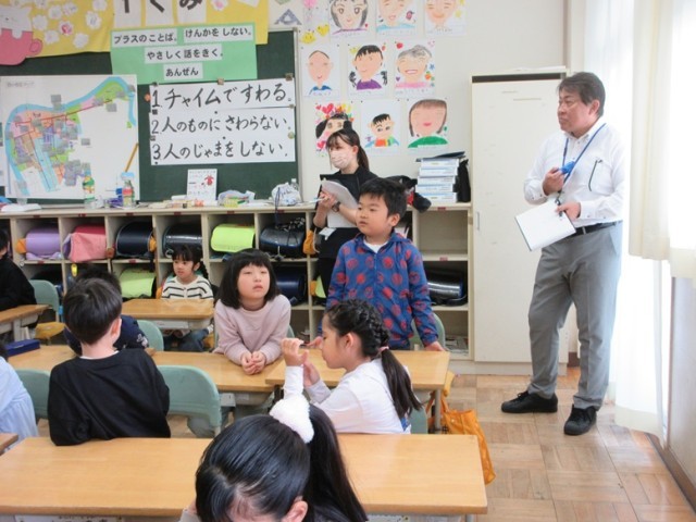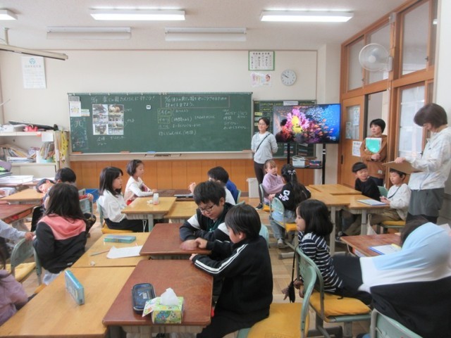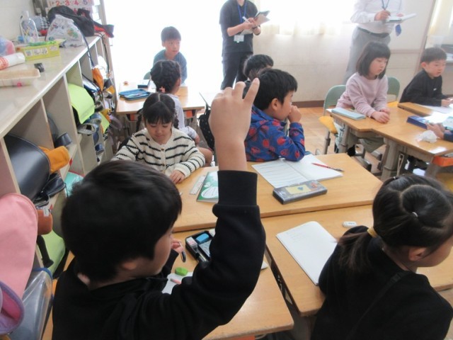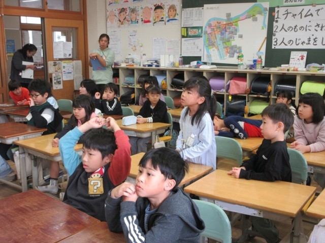 今日の2時間目は、2年1組の公開授業でした。生活科で「楽寿園探検を成功させよう」というめあてに向かい、どんなことをすれば成功できるのかを発表し合いました。最初は、持ち物のことについてたくさん意見が出ました。先生は「持ち物だけで成功できますか?」と尋ねます。すると、「たくさんの人がいるだろうから、人に迷惑をかけないようにする」「先生の話をよく聞く」などの意見が出始めました。それに付け加えるように「○○さんに似てるけど~です」とたくさんの意見が出されました。友達の話をよく聞き、つけたしていける話し合いでした。