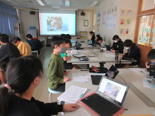 3組は、英語です。これまで調べてきた動物についていよいよ英語でスピーチする日です。みんな、練習の成果かなめらかに話しています。