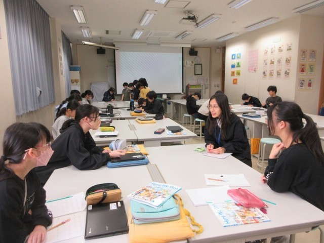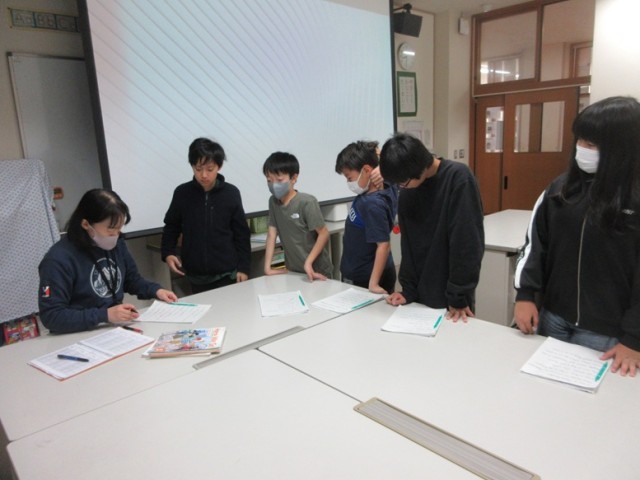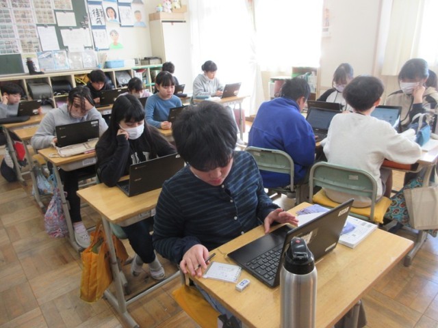3組は、英語で、自分の調べたい動物について英文でまとめています。それを先生にチェックしてもらっています。明日の修学旅行の行き先などについて、ALTの先生と会話している子たちもいました。
