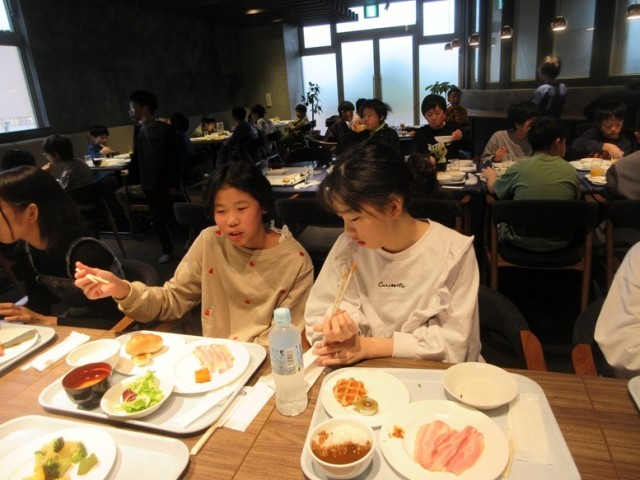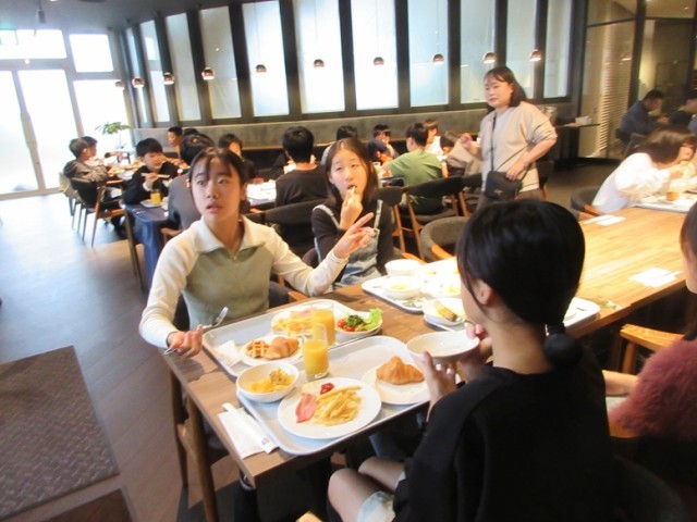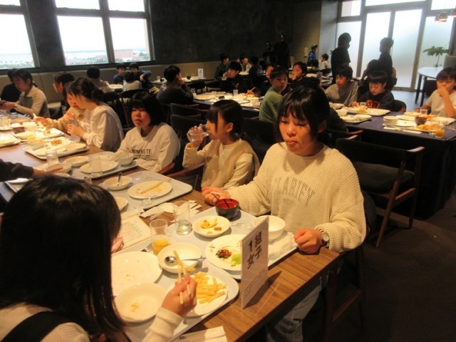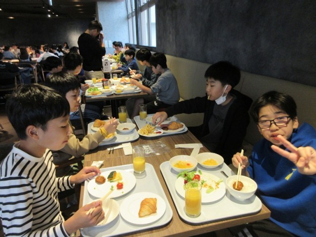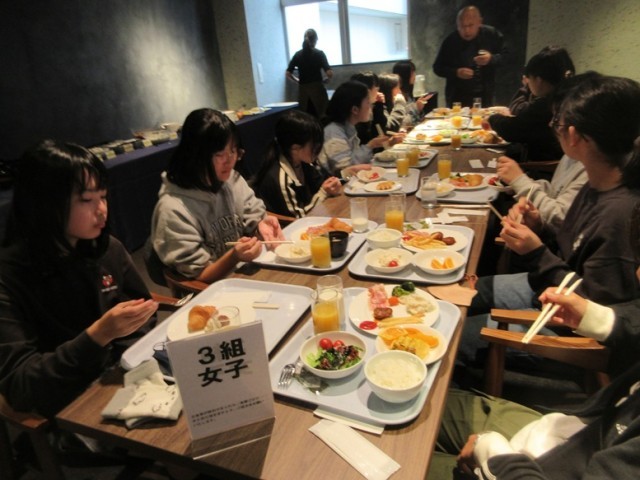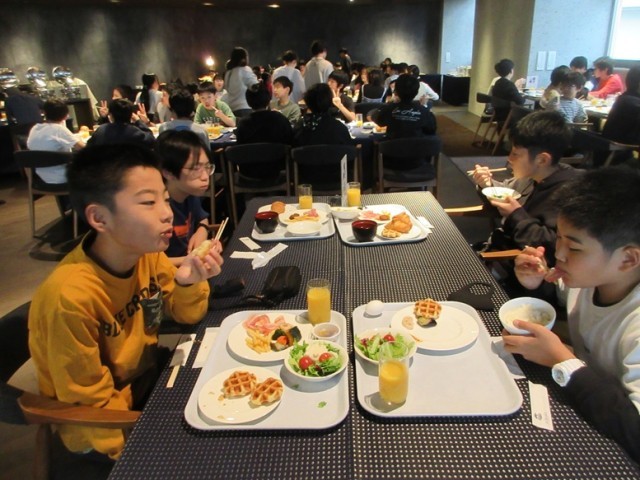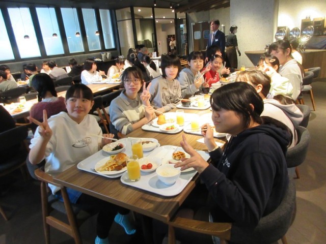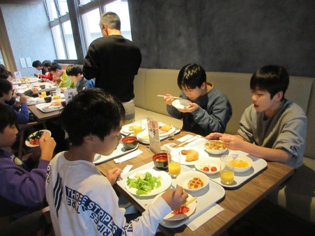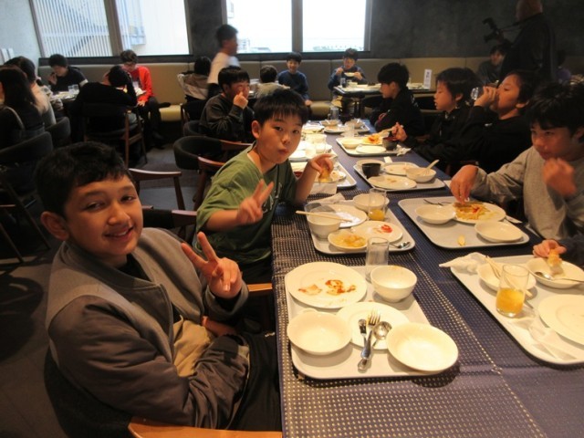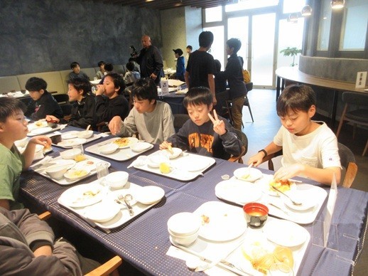 「おいしい朝食、いただきま~す!」みんな、おかわりもして沢山朝食を食べました。