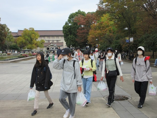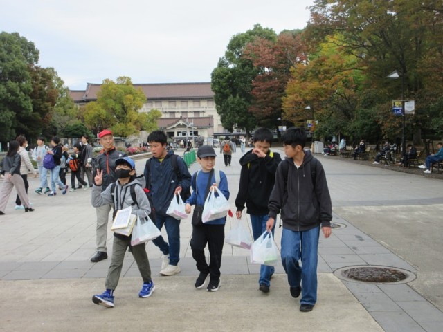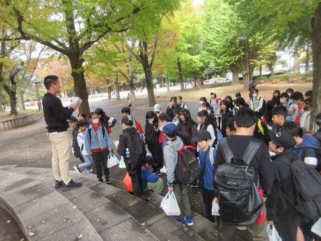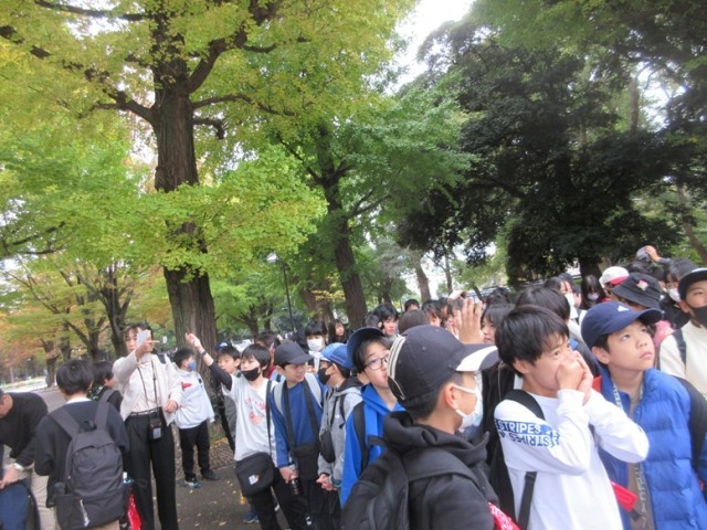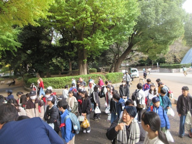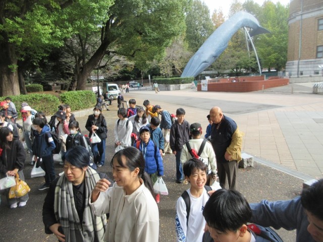 科学博物館の大きなクジラの前でクラスごと記念写真を撮り、お弁当をもらったら上野動物園と科学博物館に分かれてグループ見学開始です。