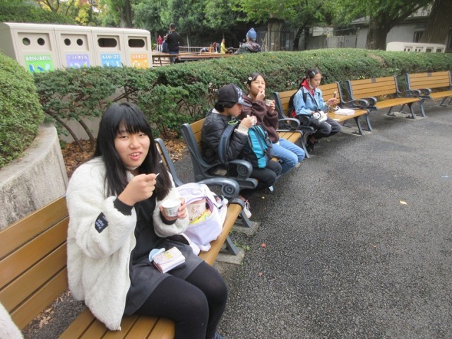 集合時刻近くになると出口近くに集まってきました。中には高級なアイスを食べている子たちもいました。時間になり、グループごとに写真を撮ってもらい、元来た集合場所に向かいます。
