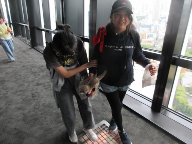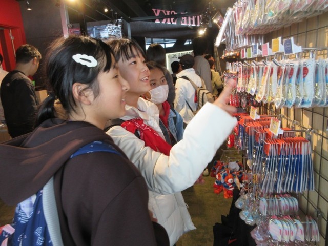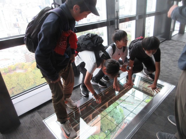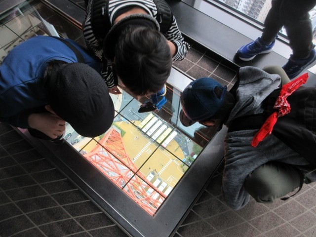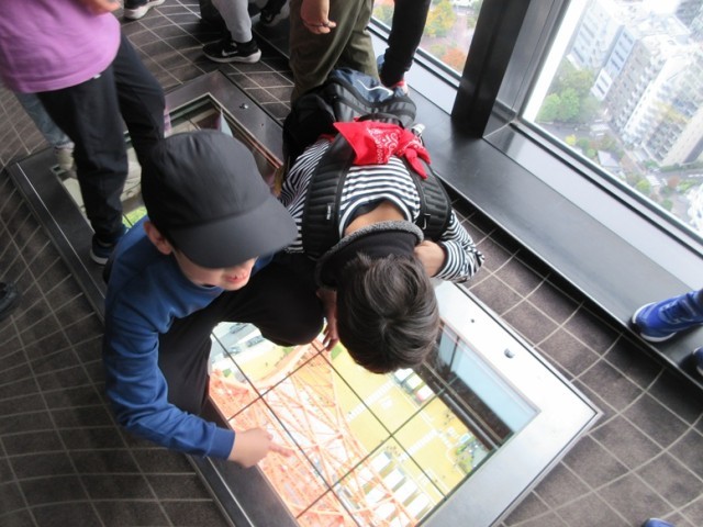 東京タワーから眺める景色はどうだったかな?下が見える強化ガラスの上に立つと、背筋がヒヤッとしましたね。最後のお買い物ポイントでは、修学旅行生が長蛇の列でレジに時間がかかり、あきらめた子もいたかな?こんなにも東京タワーに人が多いなんてびっくりでしたね。