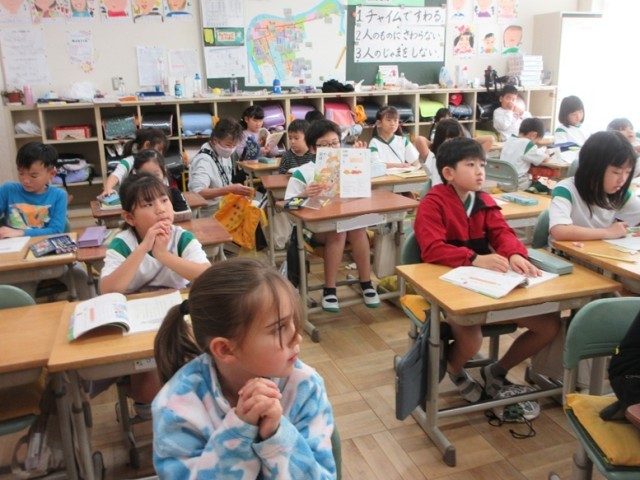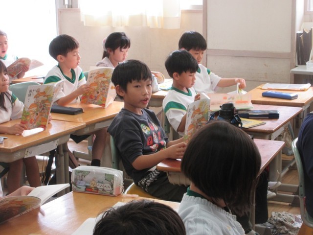 2年1組は、国語「どうぶつカードをつくろう」の学習です。まずは、教科書を○読みして、どんな動物カードを作るのかを考えています。