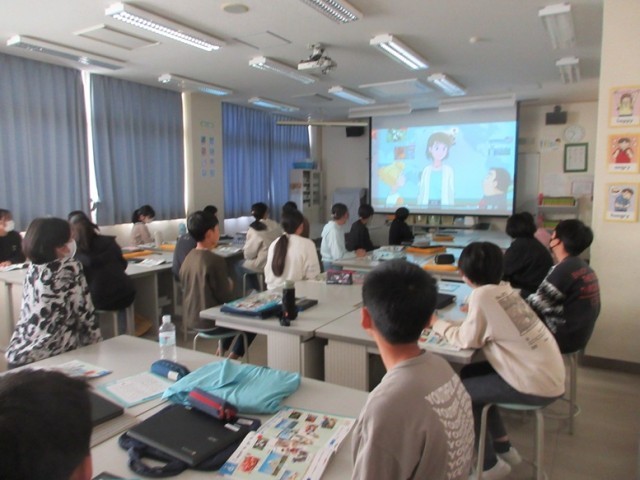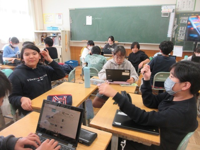 2組は、家庭科の学習です。掃除について、グループでスライドを共有し、場所などを確認していました。
