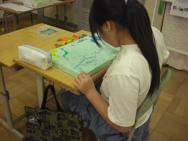 ペグ・せんたくばさみ・都道府県パズル・図形うつし・まちがいさがし・ビーズつまみ・ビーズとおしを行っていました。