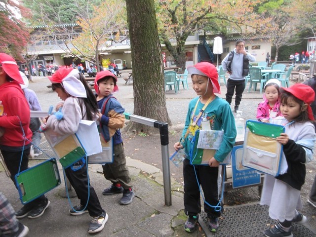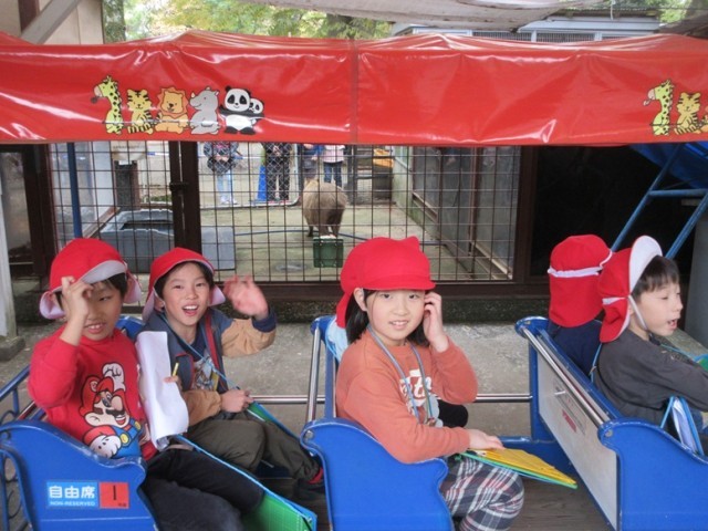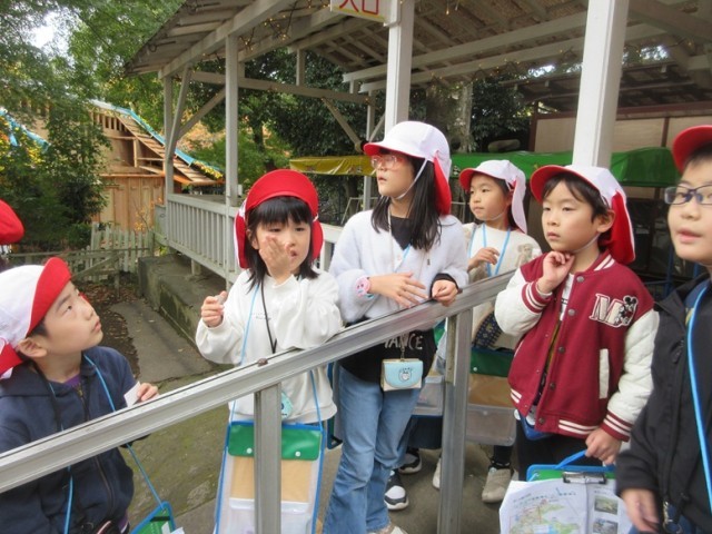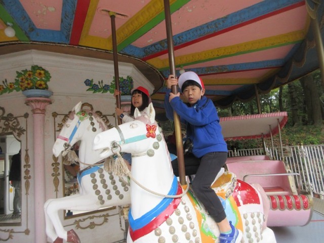 班活動は、途中ではぐれてしまった子もいたけど、みんなで探したり、「あそこにいたよ」と情報を集めたりしながらなんとか合流できました。豆汽車やメリーゴーランドの切符売り場は長蛇の列でした。みんな、とっても楽しそう!