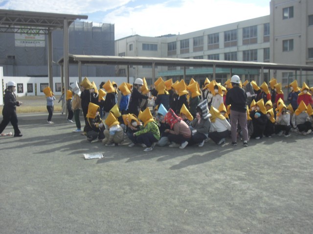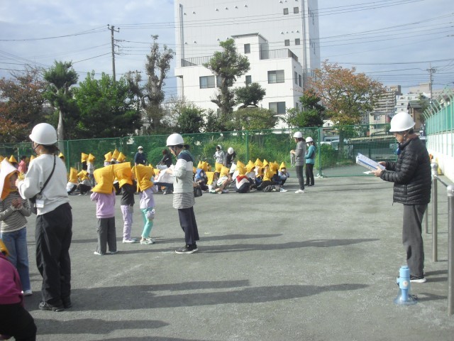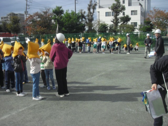 昨日、火災避難訓練を行いました。家庭科室で出火したことを想定し、避難しました。