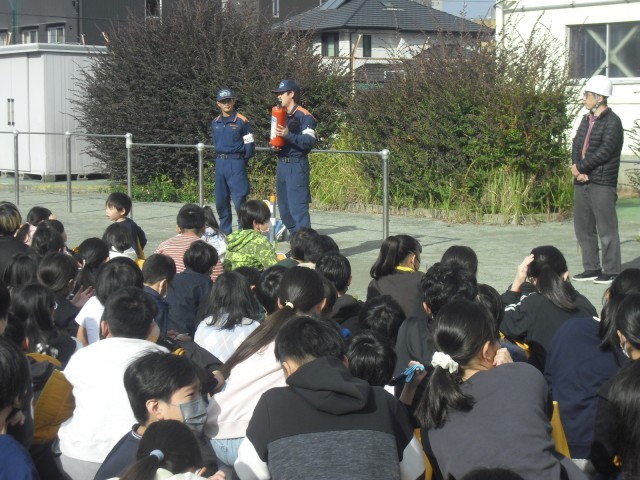 南消防署のみなさんも来校くださり、消火器の使い方を教えていただきました。訓練の後、5年生は煙体験も行いました。南消防署の皆様、ありがとうございました。