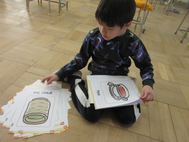 7の1組は、ことわざカルタでう。6年生が読み札を読んでいます。さあ、誰が一番多くとれたかな?