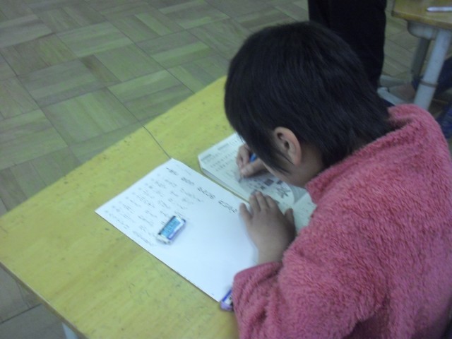 プリントや漢字かるたなど、それぞれの課題に集中して取り組んでいました。