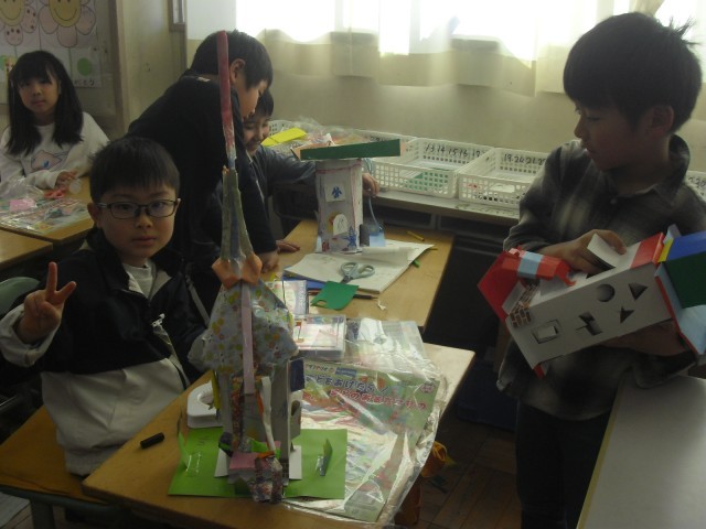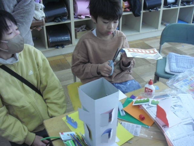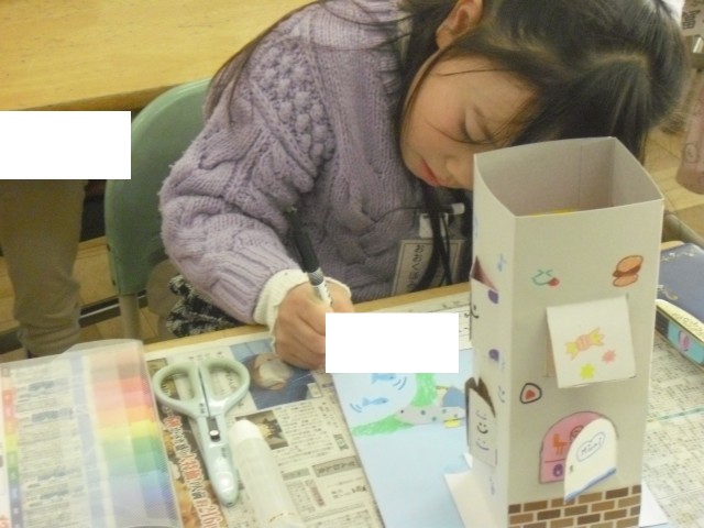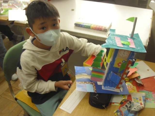 イメージを膨らませ、すてきな「まどのあるたてもの」ができあがってきました。