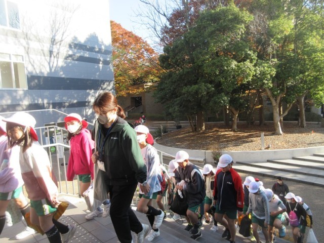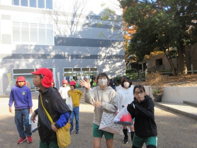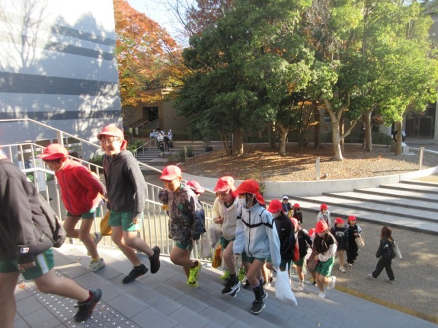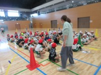 前半に4,5,6年生の学年集会の時間が設定されているため、4年生以上の高学年が香陵アリーナに向かいました。みんな、とってもうれしそうな表情をしています。
