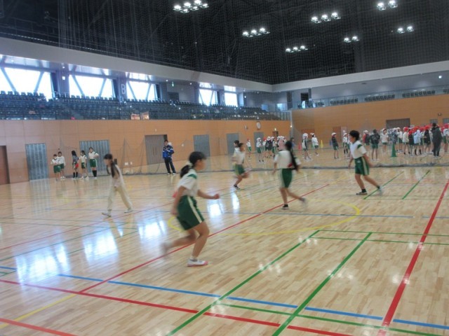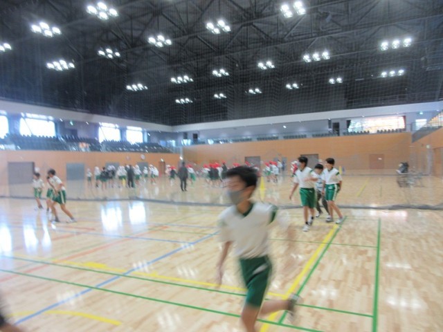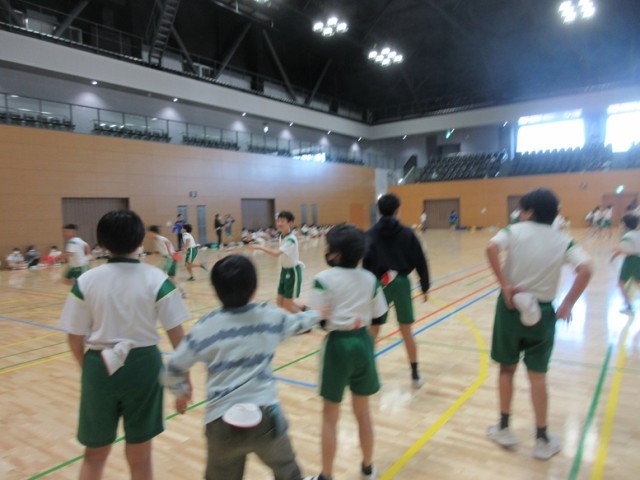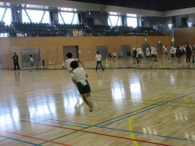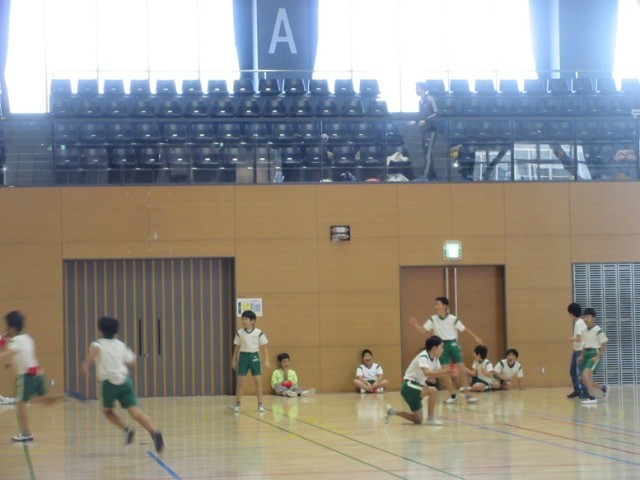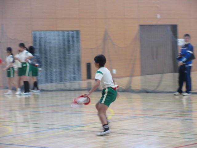 6年生の学年競技は、しっぽ取りゲームです。しっぽは、赤白帽子なのでより難易度が高かったと思いますが、コートを全力で走って追いかけたり、逃げたりしています。