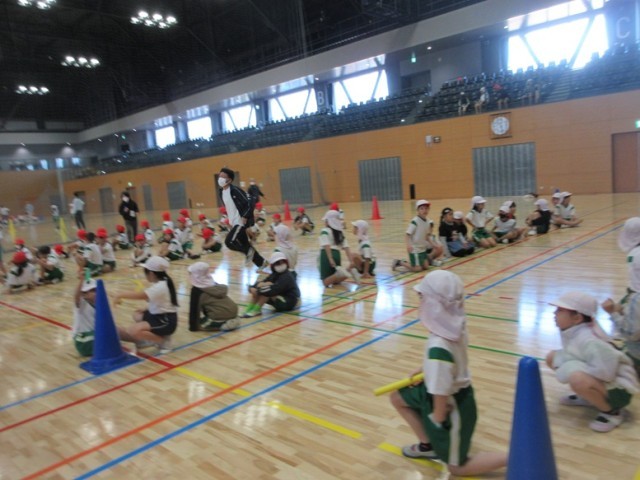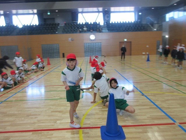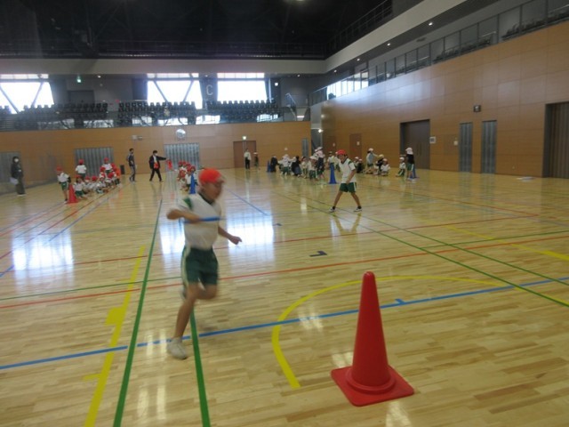 後半の学年別の競技です。3年生はリレー、2年生はドッジボール、1年生はメディシングボールです。応援する友達もとっても大きな声を出しています。