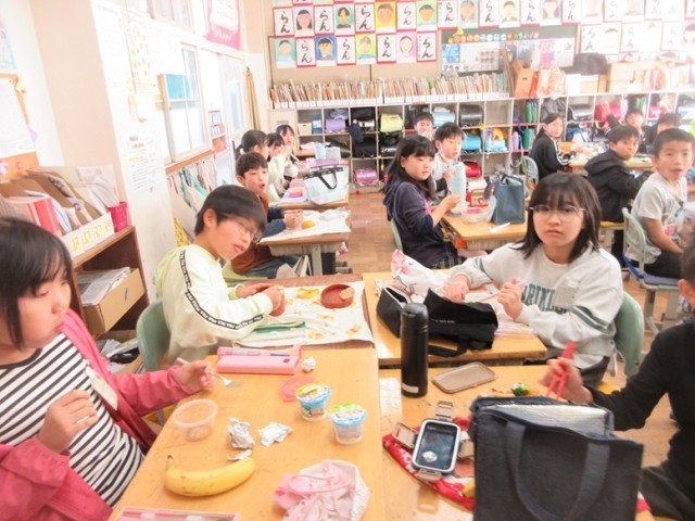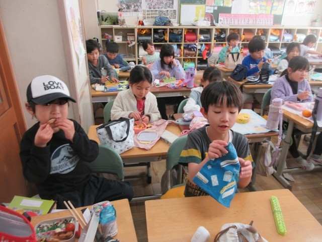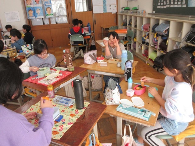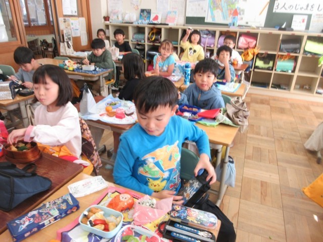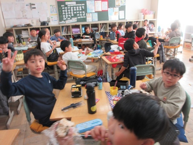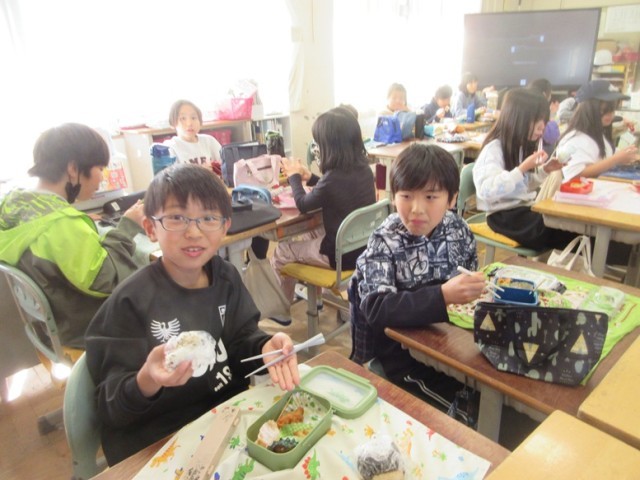 「先生!こんなに大きなおにぎりなんだよ!」「茶色いのが多いんだけど、おいしいんだよね~」」などなど、いろんなことを教えてくれました。