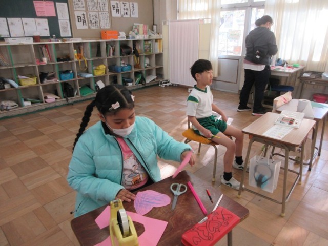 2組は、廊下をクリスマス風に飾り付けようという学習課題で、それぞれが考えた飾りをつくっています。にぎやかで楽しい廊下の掲示になるといいですね!