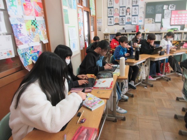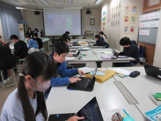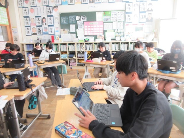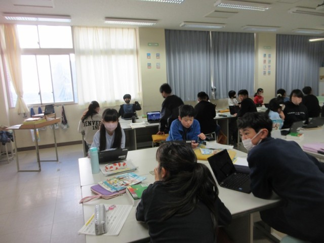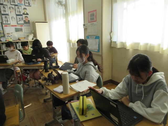 3組は、Chromebookで修学旅行のまとめのスライドを作っていました。