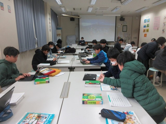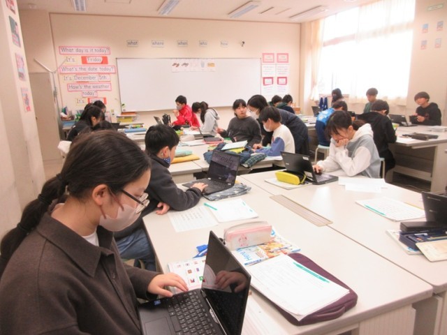 3組は、英語の学習です。「In ~you can~」というフレーズを使って英語の文章を考えています。