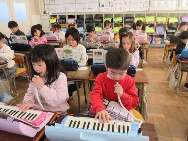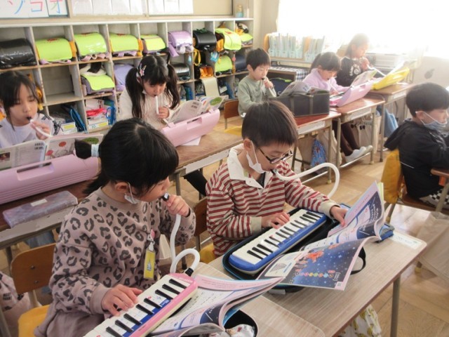 2組は、鍵盤ハーモニカを使って「きらきらぼし」をみんなで、練習しています。きれいな音がそろってきました。
