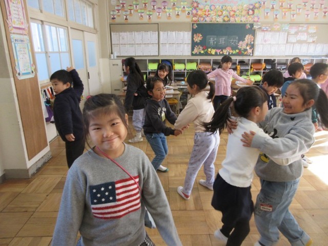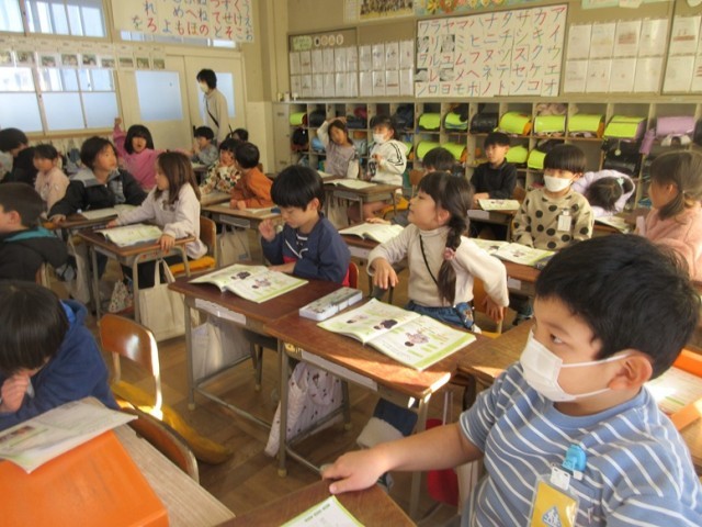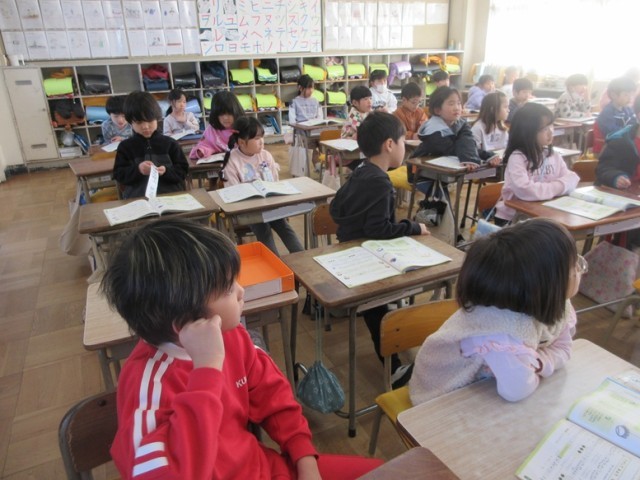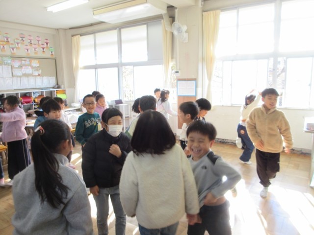 1年生は1,2組とも音楽の学習です。1組では、「くるみ割り人形」の曲を聴いて、旋律の呼びかけのおもしろさを感じ取り、体いっぱい使って動きで表現していました。とっても楽しそうです。
