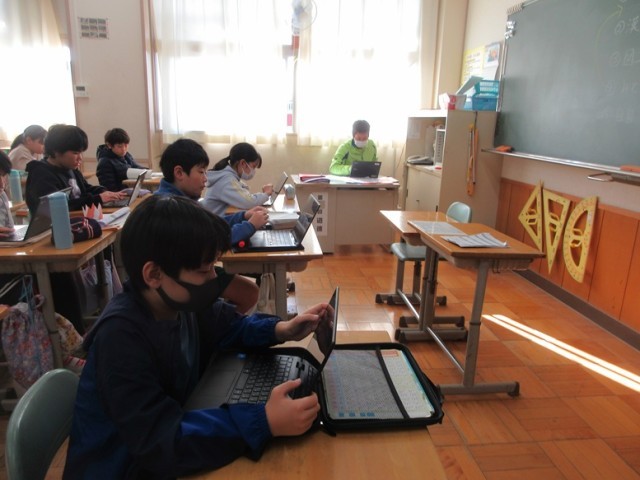2組は、ネットモラルについて各自で学習しています。冬休み中も適切な対応を6年生としてお願いします。