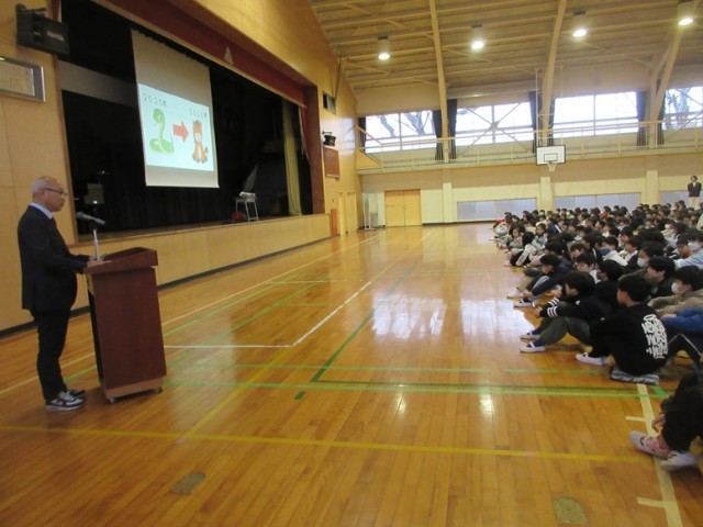 校長先生からは、午年にちなんで、前進していきましょうというお話がありました。また、今年新校舎ができることと関連付けて、「みんなは今、勉強や友達先生方との関わりを通して基礎(土台)になるところを作っています」というお話がありました。