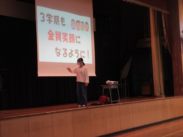1/7(水)、14日間の冬休みが明け、3学期が今日から始まりました。久しぶりに会う友達や先生に、とてもうれしそうな表情で登校してきました。この冬休みは、大きな事故やけがもなく、こうして今日の日を迎えられたことをとてもうれしく思います。