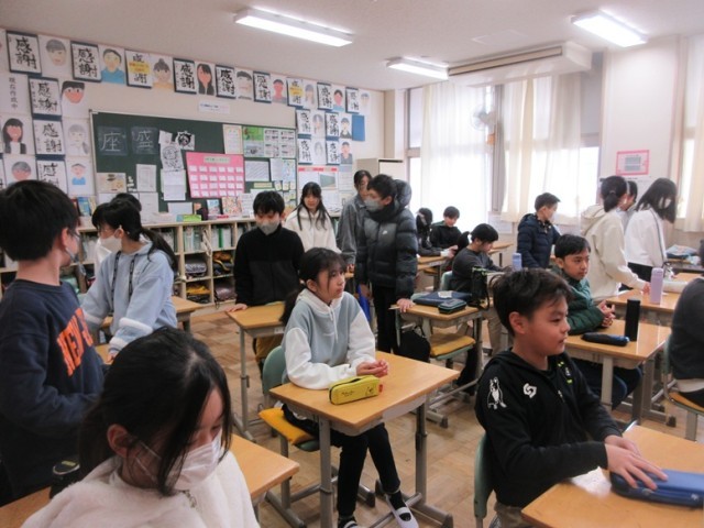3組は、新しいグループ決めです。先生の作ってきたおみくじのついたくじで決めました。誰と一緒になっても四小での生活はこの3学期だけ。みんなが笑顔で生活できるようにするのは、他でもない君たちですね。