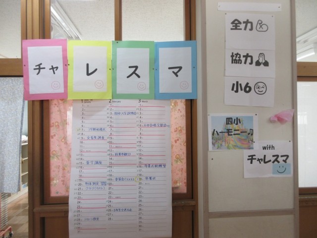 6年生の廊下には、卒業までのカウントダウンカレンダーが掲示されました。1日1日を大切にしながら生活してほしいと思います。