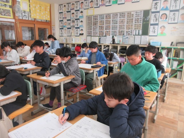 2組は、明日の定着度調査に向けての取り組みです。6年生ですからこれまで学習してきたことの総まとめです。持てる力を最大限発揮して明日に臨んでほしいと思います。