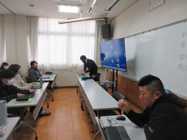 次に、新たに導入される見込みの学習支援アプリ「ロイロノート・スクール」の研修を行いました。教務主任から実際に授業で活用される実践例を紹介され、捜査方法等を研修しました。