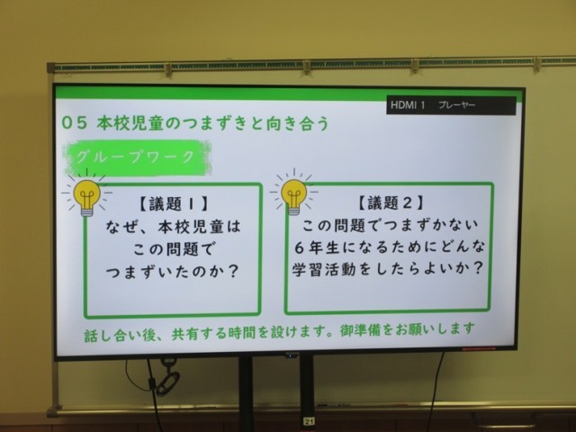 最後に、全国学力学習状況調査にについて、研修センターの分析動画を視聴した後、話し合いを行い、今後の授業改善に生かすアイデアが出されました。
